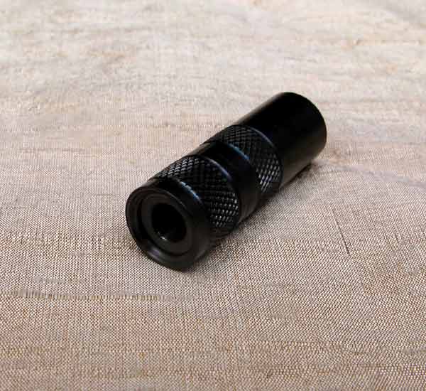 Blued steel adapter with knurling 10 x 1 female to half inch UNF showing TPR