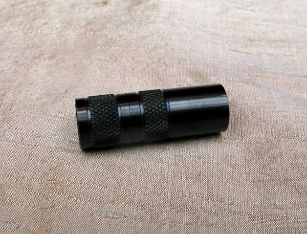 Blued steel adapter with knurling 10 x 1 female to half inch UNF x 20