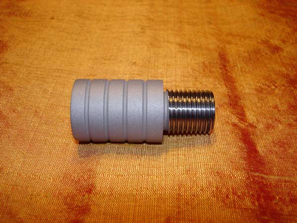 Steel barrel adapter for SKAN after silica blasting in preparation for chemical blacking