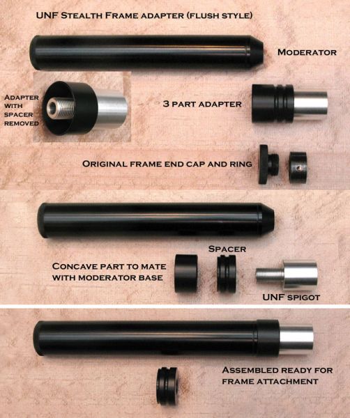 Aluminium Stealth UNF frame adapter, 3 piece type