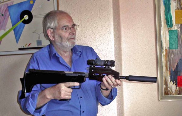 Chinese AR10 Bullpup (QB57) adapter in oil blued steel, with Gramps behind the trigger