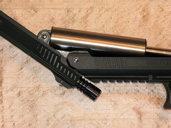 Webley Alecto barrel extension adapter and TPR at full cock position showing clearances