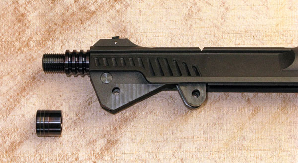 Webley Alecto barrel extension adapter and thread protector ring in oil blued steel