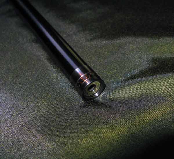Blued BSA barrel with jewelled and oil blued thread protector ring