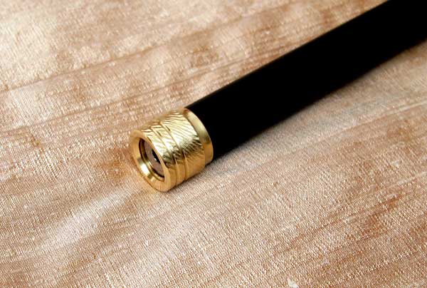 Chatter style brass thread protector ring on matte black coated LW barrel, close-up