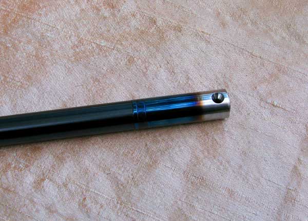 BSA barrel for Theoben MFR showing porting and jewelled oil blued sleeve 2