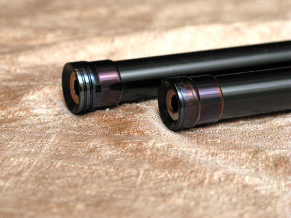 Oil blued thread protector rings, slightly different designs, one with jeweled band