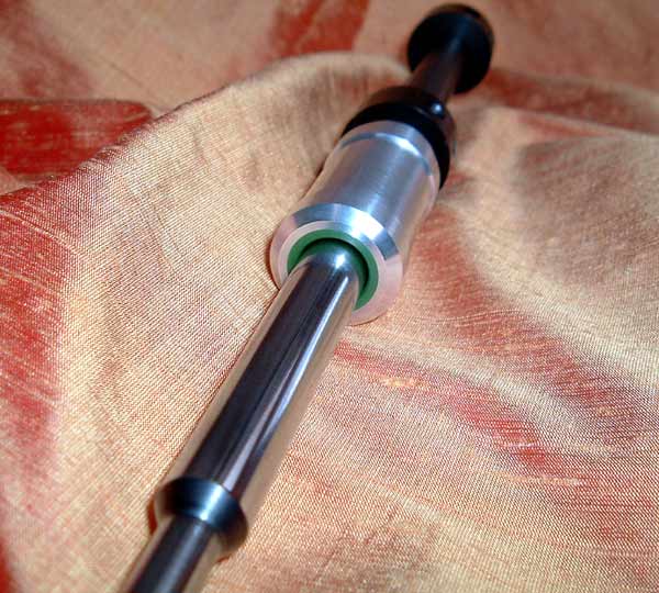 A barrel guided waisted aluminium hammer with oil filled nylon core