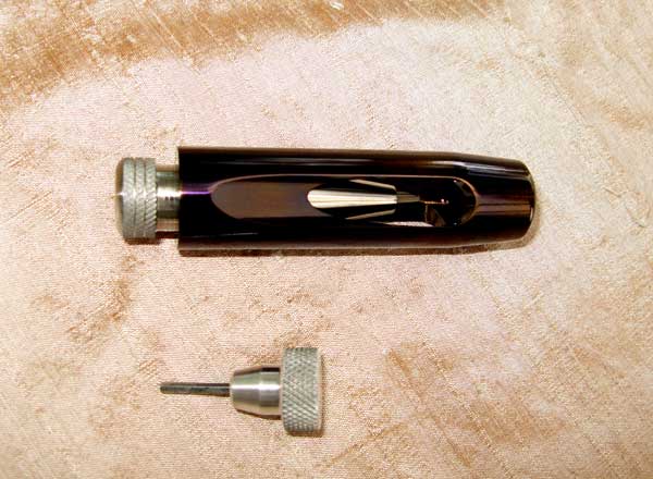 Blued steel air stripper with graduated stainless steel cone fitted and key