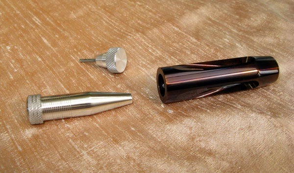 Blued steel air stripper with graduated stainless steel cone and key
