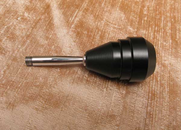 Rapid 7 bolt knob redesign (polished stainless steel and black Delrin), closeup