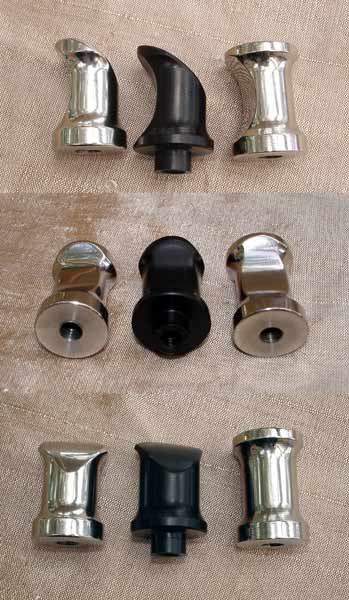 Breech slide knobs L to R, SS and Delrin fully sculpted style,SS Sculpted, mix views