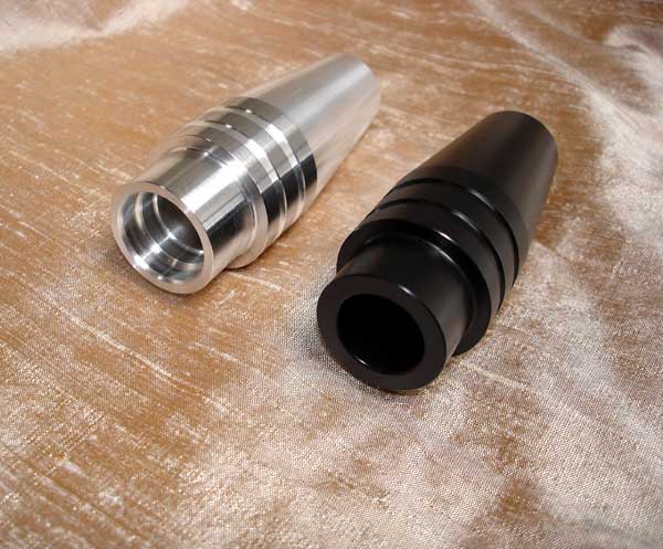 Frame end caps, long banded type in black plastic and aluminium, end view