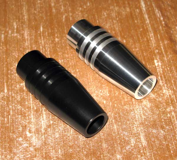 Frame end cones, long 3 banded style in aluminium and black Delrin, view 2
