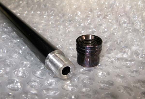 .25cal barrel with oil blued thread protector ring showing UNF thread and crown