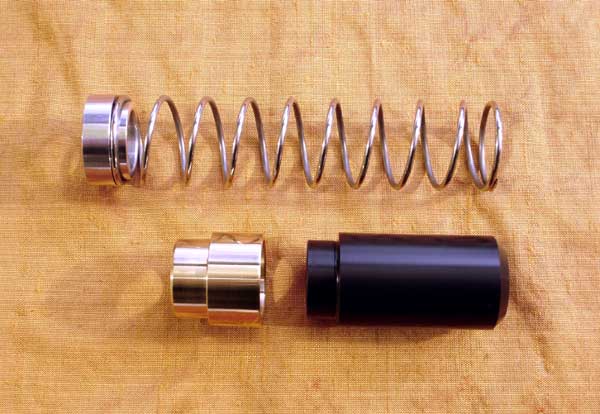 Hybrid hammer before assembly, with stainless steel mainspring and centraliser